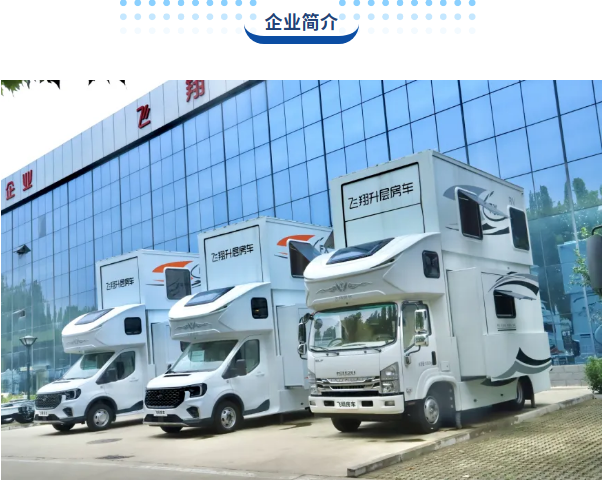 濮阳市飞翔房车实业有限公司始创于2010年,坐落于河南省台前县产业集聚区机动车配件园区,注册资金3000万元,占地35000平方米,厂房建筑面积20000平方米,是一家集房车研发、改装、生产、销售及服务于一体的综合性企业。