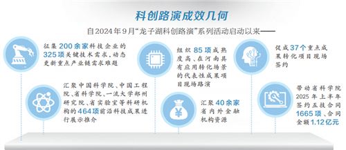 自去年9月启动以来,系列活动已累计推介来自中国科学院、中国工程院、省科学院、省实验室等单位的464项前沿科技成果;成功组织85项成熟度高、适配河南转化场景的优秀项目登台路演;精准收集325项企业技术需求;推动37项重点成果转化项目现场签约……如今,“龙子湖科创路演”已建成全链条、开放式、常态化的高能级转化平台,成为河南科技成果转化的“超级IP”。