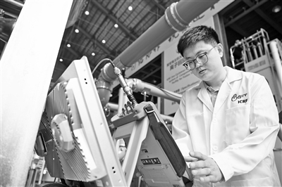 图为 9月11日,在位于合肥市的聚变堆主机关键系统综合研究设施园区内,科研人员在查看离子回旋加热系统的运行状态。新华社记者 张端摄