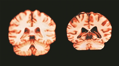健康大脑(左)和受阿尔茨海默病影响的大脑。