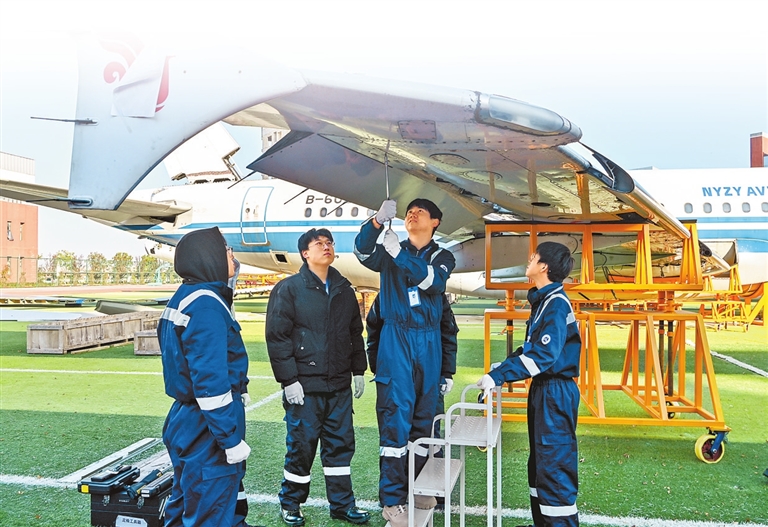 11月20日,南阳中豫航空产业发展研究院人才培训基地内,学员在教员的指导下进行实训。 张峰 摄