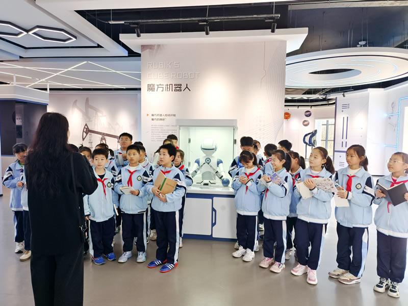在科科岛工作人员的带领下,学生们依次参观了童趣楼、科创楼的石油乐园、声光秘境、电磁探趣、力学奥妙、数学天地、石油起源、采炼征程、石化新材、人工智能等特色展区。