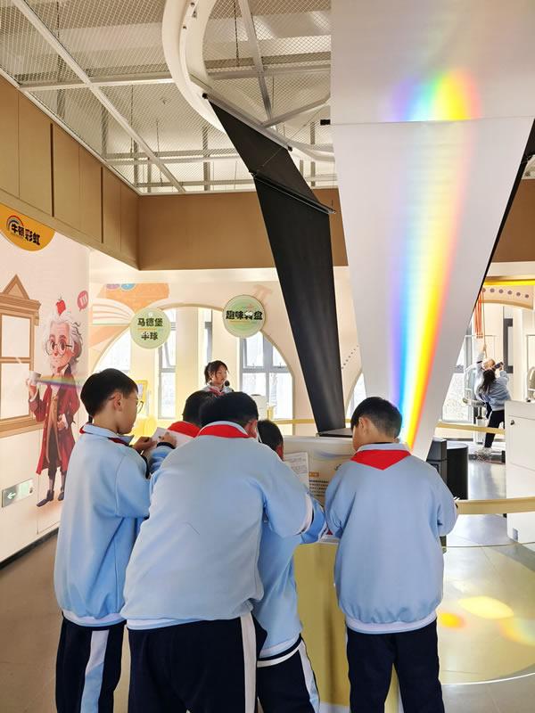 在声光秘境展区,学生们仿佛踏入了一个奇幻的世界。他们通过观察各种有趣的光学现象,如光的折射、反射实验装置,直观地理解了为什么我们能看到彩虹,以及镜子是如何成像的。声音的奇妙之旅也让孩子们大开眼界,了解到声音是如何产生、传播的,通过互动装置感受不同频率声音的差异,对音乐和声学有了更浓厚的兴趣。
