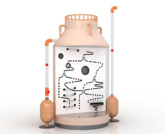 展项主要是由塔模型、台体控制台、电机构成。小球由风机传送到罐体中,触发装置启动,小球从顶部顺着轨道下落, 可通过操作台将小球导入不同的轨道。