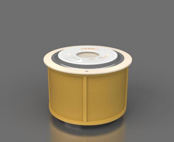 展品由展台、橡胶圈、超声波雾化器组成。当观众向下按压橡 胶圈时 ,台体内的空间瞬间压缩 ,推动颗粒组成的烟雾与空气从中央 圆孔中喷出 ,由于圆孔出口周边的空气是静止的 ,因此喷出时会牵引 到这部分空气 ,形成一个从圆孔边缘由内向外旋转的环状涡流。“水 雾”颗粒被涡流束缚后 ,无法等速扩散到周边空气中 ,便形成了我们 看见的云圈。