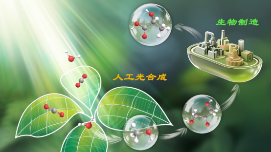 人工光合成-生物制造“接力”示意图。大连化物所供图