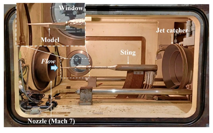 物理学告诉我们,高速运动的物体与大气剧烈摩擦会产生大量的热。为了验证纸飞机能否在这种情况下幸存,研究团队将一个按三分之一比例缩小的纸飞机模型,放进了东京大学柏叶校区的“高超声速高焓风洞”中。
