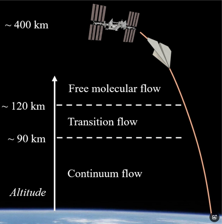 纸飞机冲入大气层时,空气流动方式会经历不同阶段