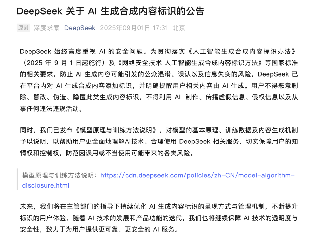 DeepSeek公告截图