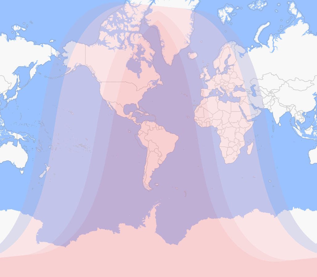 可见范围:南美洲、北美洲东部、格陵兰岛及南极洲局部