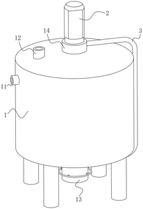 本申请提供一种化学原料搅拌罐,属于化工生产技术领域,包括:外壳,其侧壁固定连通有进液管和进料管,外壳底部固定连通有出料管,外壳顶部设置有圆筒,外壳内部设置有隔板,隔板高于进液管且低于进料管;电机,其设置在圆筒顶部,电机的输出轴底端固定连接有同时贯穿圆筒和隔板的空心杆;抽液机构,设置在圆筒上;集料机构,设置在外壳内;截流机构,设置在圆筒内;导料机构,其设置在空心杆上;本申请能够采用间歇式预混的方式将固态原料逐渐加入液态原料当中,降低固态原料在接触液态原料时出现结块情况的概率,避免固态原料和液态原料最终的搅拌混合质量受到影响。