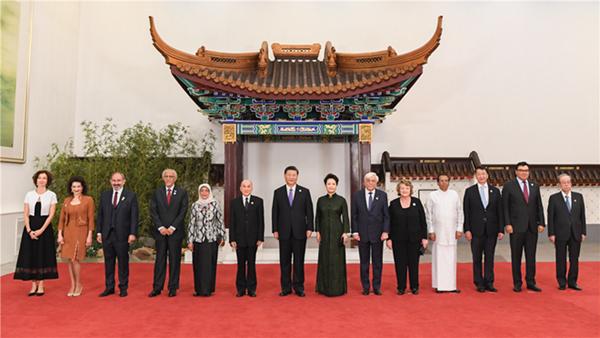 初夏的北京,生机盎然。晚上的人民大会堂,灯光璀璨。伴随着欢快的迎宾曲,习近平和彭丽媛同贵宾们一同步入金色大厅。