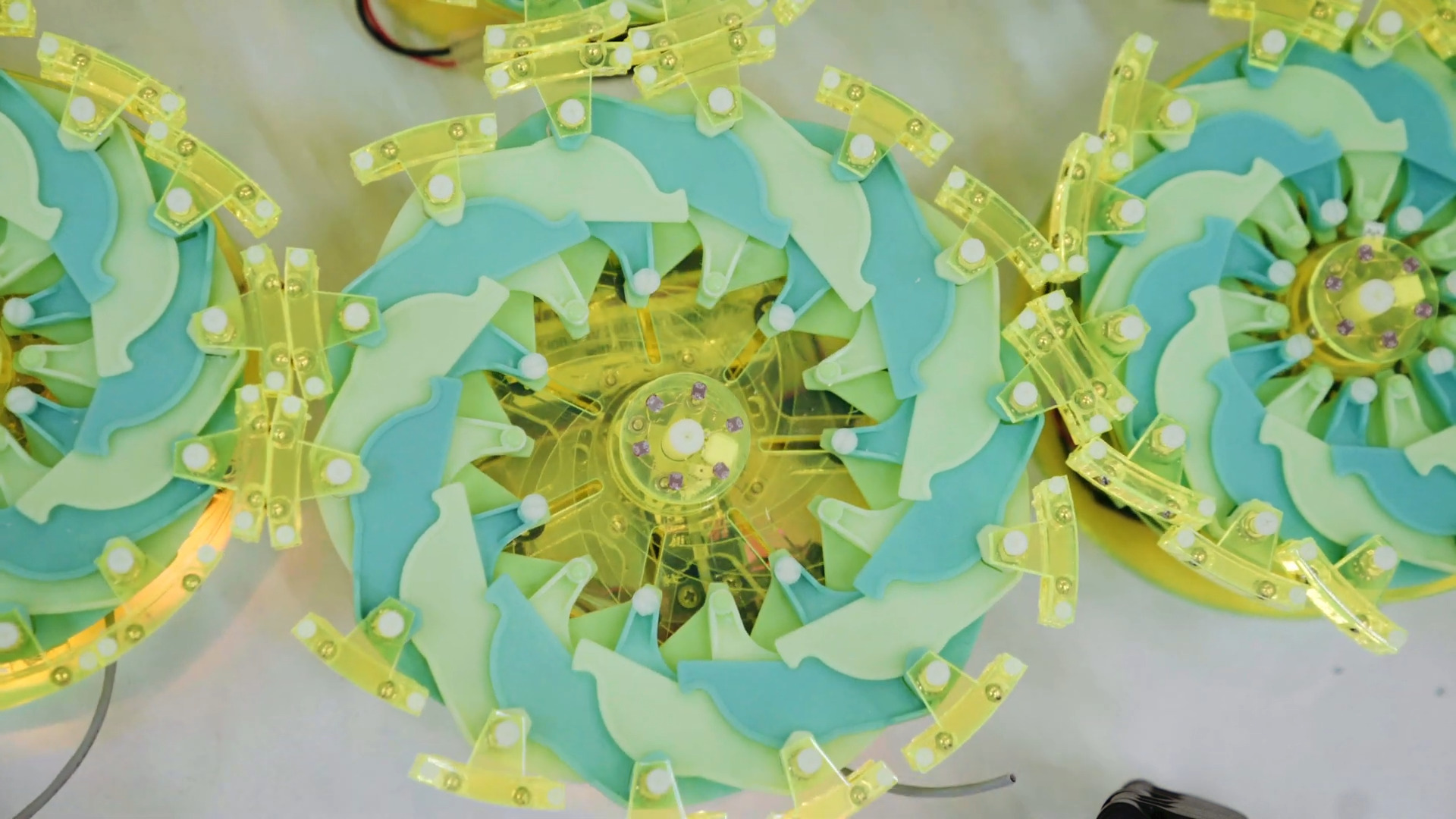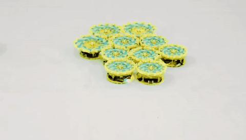 每个机器人都由基本部件组成:电池、电机、光传感器、微控制器和允许其发送和接收信号的组件。这种技术机器人结合了“ Hoberman飞行环 ” ,就像一种可以扩展和收缩的儿童玩具。
