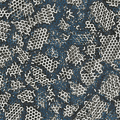 低密度无定形冰结构中有许多微小晶粒(白)隐藏在非晶材料(蓝)内(艺术概念图)。