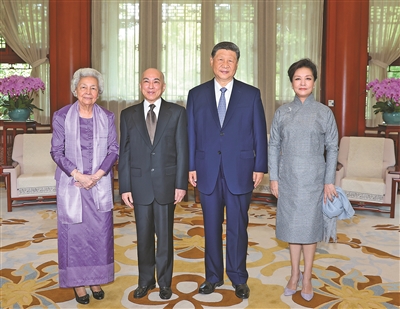 习近平热烈欢迎西哈莫尼国王和莫尼列太后再次来华,也欢迎西哈莫尼国王出席中国人民抗日战争暨世界反法西斯战争胜利80周年纪念活动。习近平表示,今年4月我对柬埔寨进行国事访问,受到国王陛下和柬埔寨人民热情友好接待,至今想起都感到十分亲切。中柬关系历经国际风云考验,结成风雨同舟的铁杆友谊,成为两国人民的宝贵财富,值得双方倍加珍惜。面对变乱交织的国际形势,中柬两国要更加坚定地站在一起,赓续传统友谊,加强团结协作,加快建设新时代全天候中柬命运共同体,为两国人民带来更多福祉。中方坚定支持柬埔寨人民走符合本国国情的发展道路,实现国家长治久安。