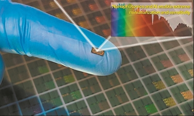 科技日报讯 (记者张佳欣)美国加州大学戴维斯分校研究团队在最新《先进光子学》杂志上发表研究称,他们开发出一种仅有砂砾大小的芯片级光谱仪。该光谱仪通过16个微型硅探测器结合人工智能(AI)算法,实现了实验室级的光谱分析功能,能在可见光至近红外波段高精度还原光谱,为便携式医学诊断、食品检测和环境监测提供了新工具。