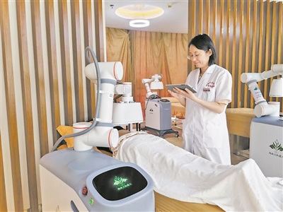 热敏灸机器人正在进行精准施灸。