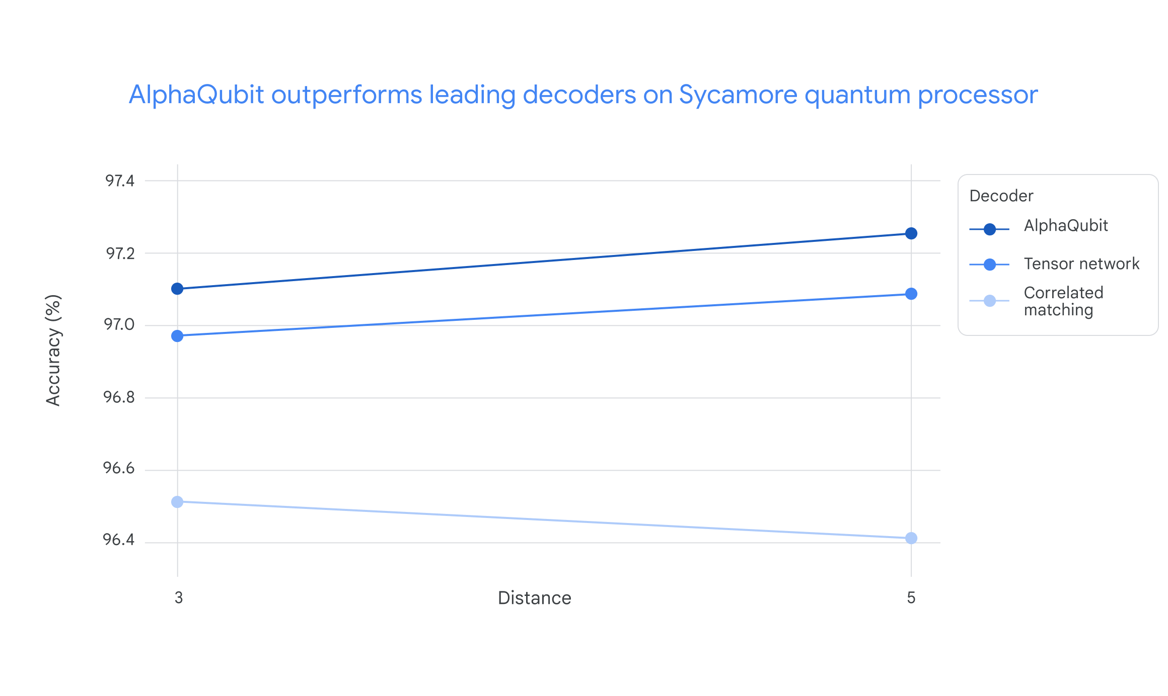 测试结果显示,在处理“悬铃木”的新数据时,“阿尔法量子比特”显著提高了错误识别的准确性。特别是在最大规模的实验中,“阿尔法量子比特”将错误率降低了6%以上。同时,它还比相关性匹配方法的错误率低了约30%。