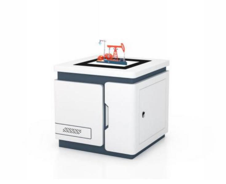 展台上摆放了一块先进的屏幕,该屏幕采用了负折射玻璃 ,使画面呈现立体实物模型。这种独特的透镜技术,通过精确的光学设计和制造,让屏幕能够模拟出游梁式抽油机实物的三维形态,为观众带来身临其境的视觉体验。