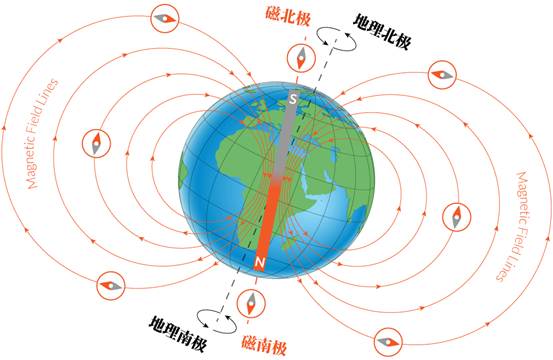 地球的地理北极与磁北极(图源:dalvey.com