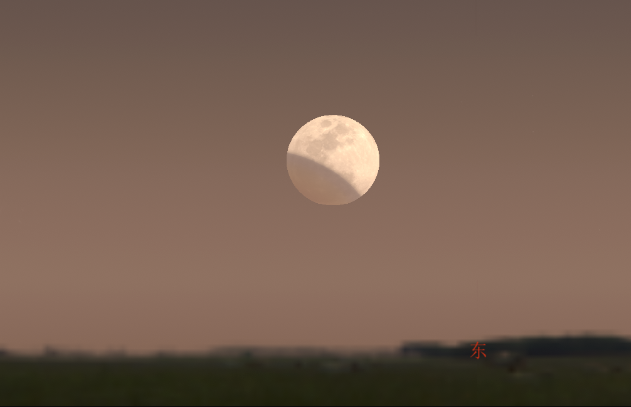 本次月全食我国可见带食而出,食分1.16,月亮刚升起地面线,月食已处于初亏阶段。如果想观赏比较完整的月食,建议寻找一处东方地平线视野无遮挡的地方进行观测。月全食各阶段为初亏时间17时50分,食既19时04分,食甚19时34分,生光20时03分,复圆21时18分。